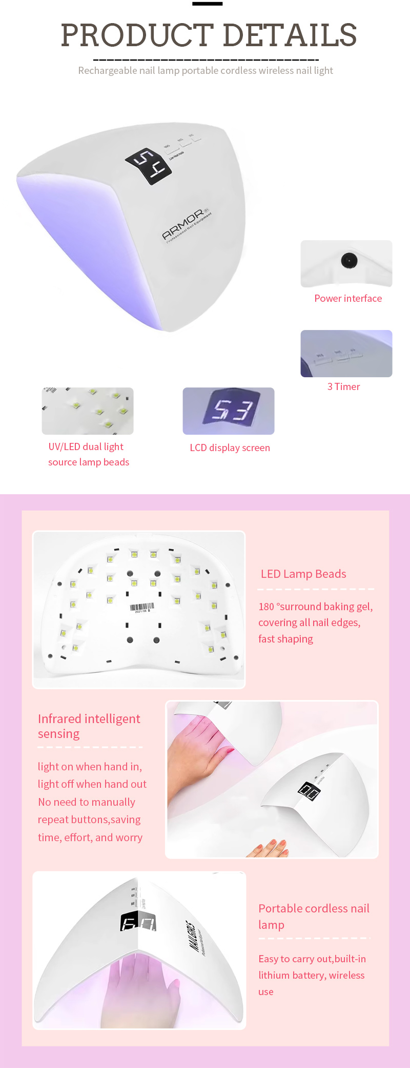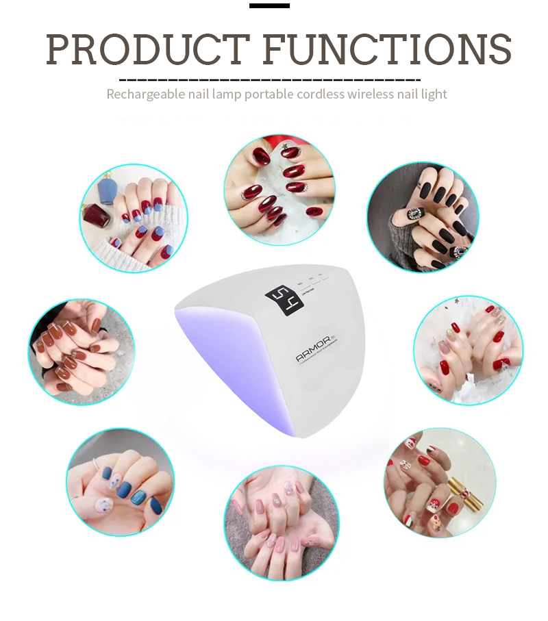 این محصول حتی خشک شدن چسب را بدون کوچک شدن تضمین می کند. منابع نوری دوگانه آن گرمایش ملایم را برای جلوگیری از تغییر رنگ دست و فشار چشم ، مناسب برای هر دو دست و پا فراهم می کند و نتایج خشک کردن بسیار سریع را ارائه می دهد.