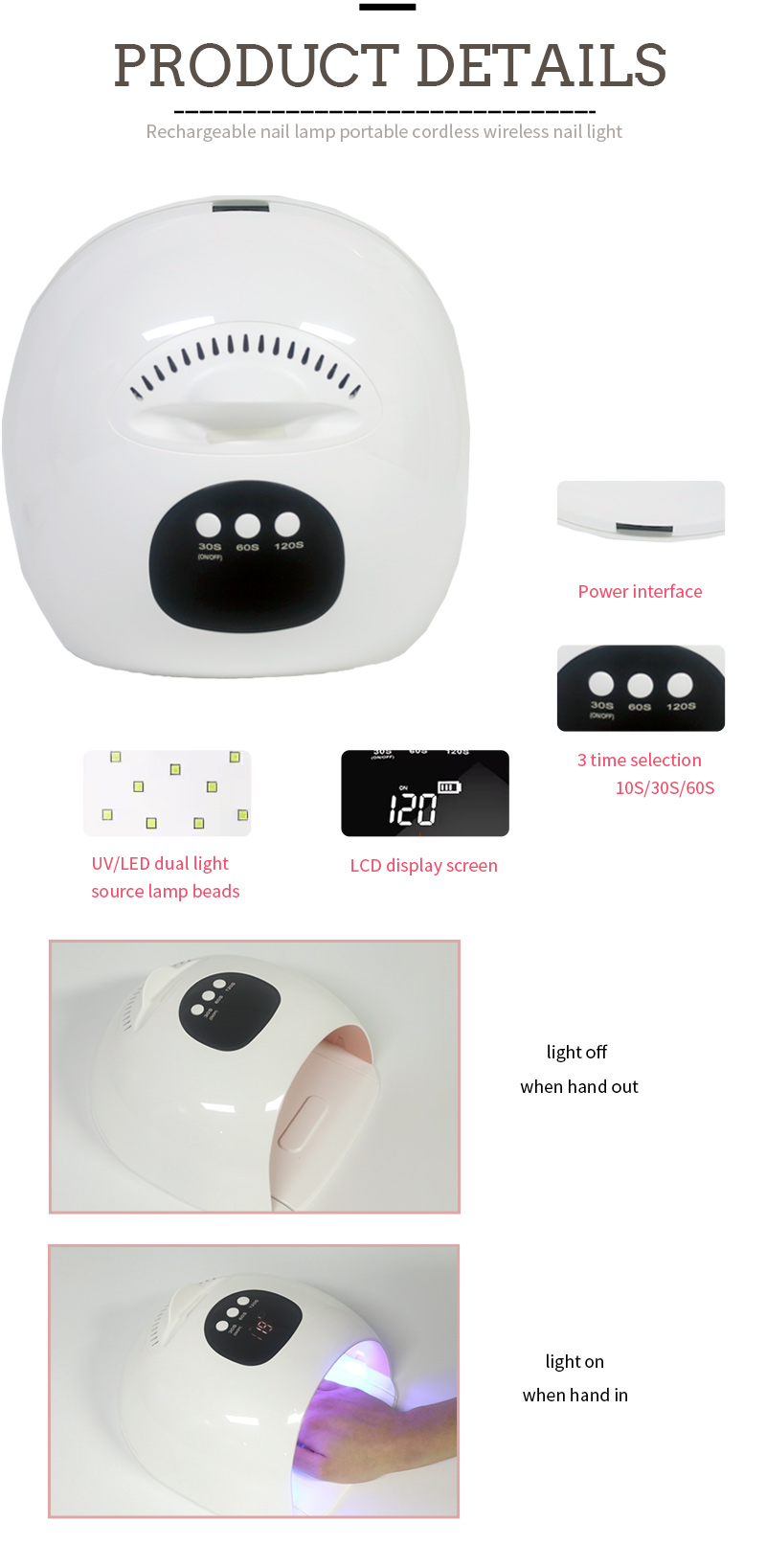 این محصول خشک شدن یکنواخت چسب را بدون انقباض تضمین می کند. منابع نور دوگانه آن گرمایش ملایمی را برای جلوگیری از تغییر رنگ دست و فشار چشم، مناسب برای دستها و پاها فراهم میکند و نتایج خشککردن بسیار سریعی را ارائه میدهد.