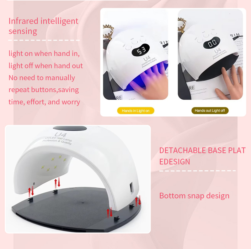 این لامپ LED خشک کن ناخن با کیفیت بالا، خشک شدن چسب را بدون انقباض تضمین می کند. منابع نور دوگانه آن گرمایش ملایمی را برای جلوگیری از تغییر رنگ دست و فشار چشم، مناسب برای دستها و پاها فراهم میکند و نتایج خشککردن بسیار سریعی را ارائه میدهد.