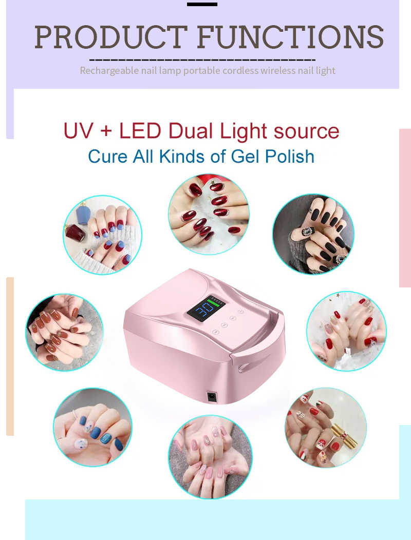 2 ، قابل شارژ ناخن پخت و پز نسخه حرفه ای 96W مجهز به پایه غیر لغزش.
