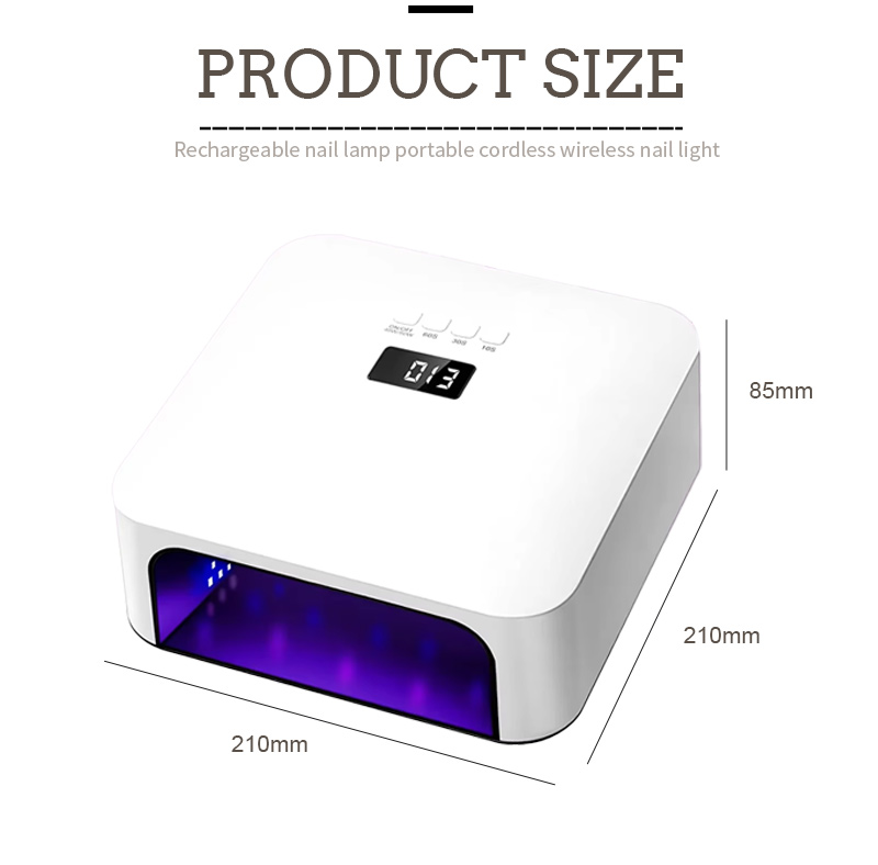 ابعاد این لامپ خشک کن سریع ناخن با کیفیت 210 میلی متر طول، 210 میلی متر عرض و 85 میلی متر ارتفاع، با ظرفیت زیاد و قابلیت استفاده از دست و پا که بسیار راحت است.