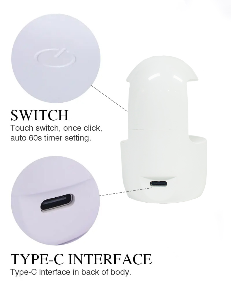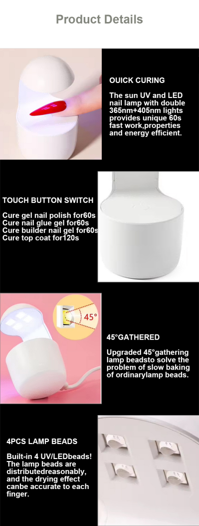 لامپ ناخن یک انگشتی مینی خشک شدن چسب را بدون انقباض تضمین می کند. منابع نور دوگانه آن گرمایش ملایمی را برای جلوگیری از تغییر رنگ دست و فشار چشم، مناسب برای دستها و پاها فراهم میکند و نتایج خشککردن بسیار سریعی را ارائه میدهد.