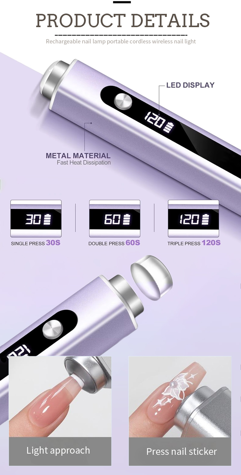 این محصول دارای یکنواختی چسب پخت و بدون کوچک شدن چسب ، منبع نور دوتایی است که چسب پخت خفیف دست ضد بسته ، به چشم ها آسیب نمی رساند ، از دست و پا استفاده می شود ، اثر خشک کردن سریع زیاد است.