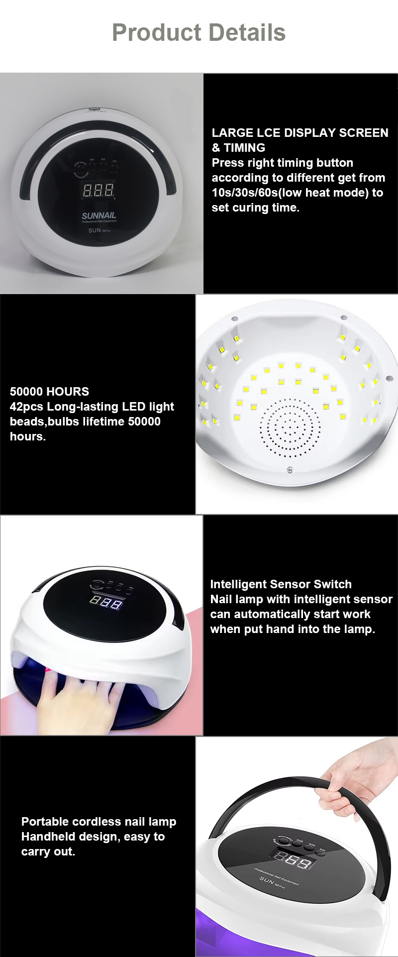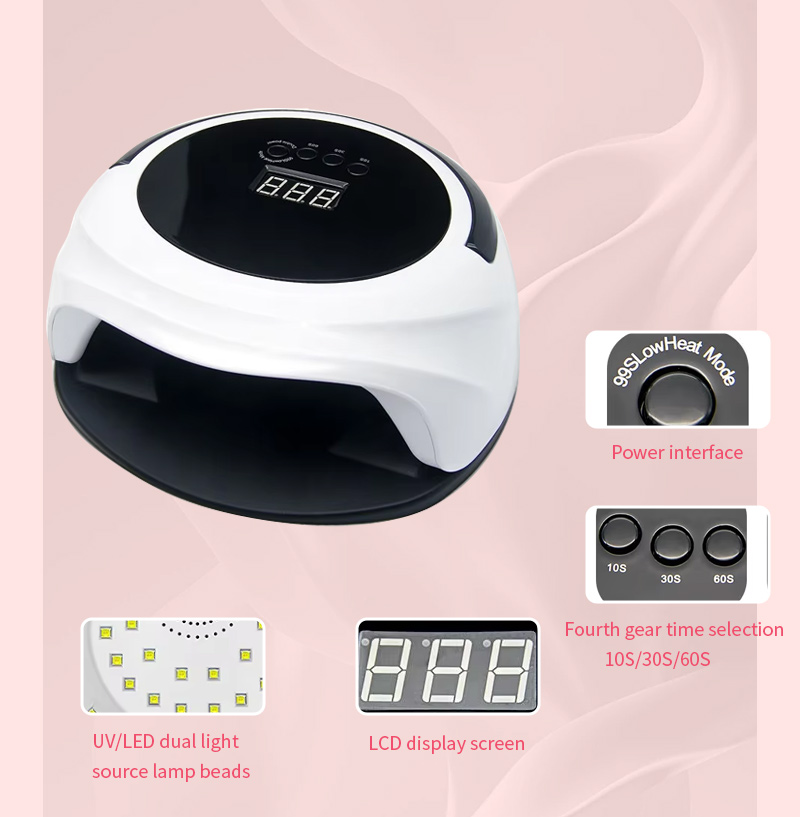 لامپ خشک کن ناخن با عملکرد سنسور خودکار خشک شدن چسب را بدون انقباض تضمین می کند. منابع نور دوگانه آن گرمایش ملایمی را برای جلوگیری از تغییر رنگ دست و فشار چشم، مناسب برای دستها و پاها فراهم میکند و نتایج خشککردن بسیار سریعی را ارائه میدهد.