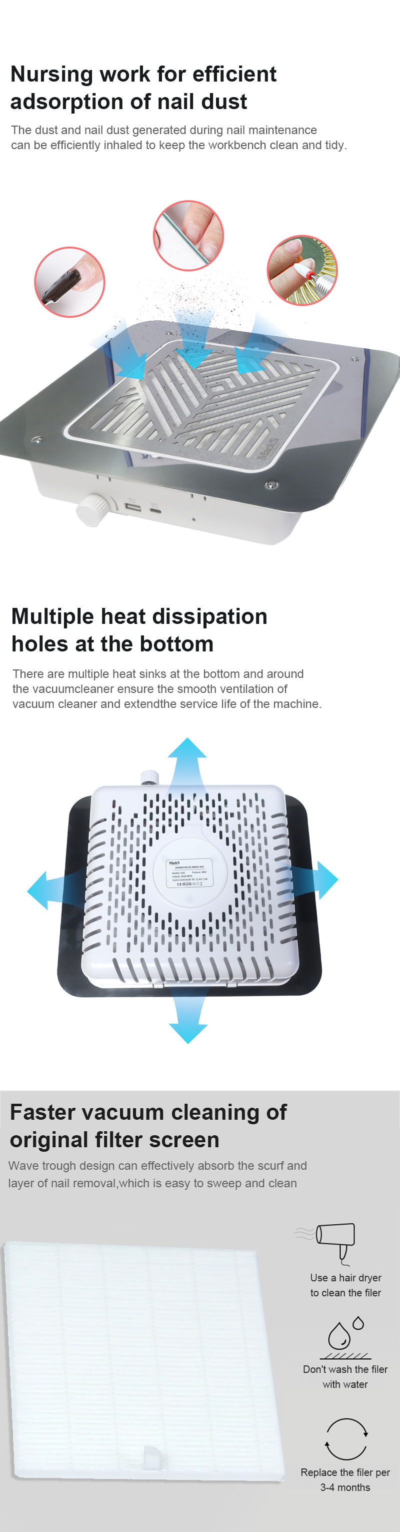 محصولات جذب قوی از بقایای ناخن گرد و غبار نشت نمی کند، صفحه پیشخوان را تمیز و مرتب نگه می دارد، جاروبرقی سریع گرد و غبار نشت قدرت بالا کارآمدتر است.